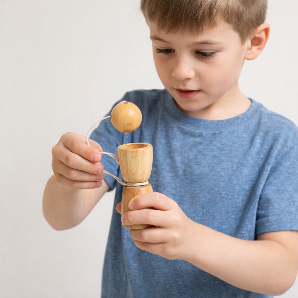 Ce bilboquet bois buis est redoutable. Viser le creux oblige à synchroniser geste et regard, affûtant la coordination œil-main. C’est un exercice ludique et complet.