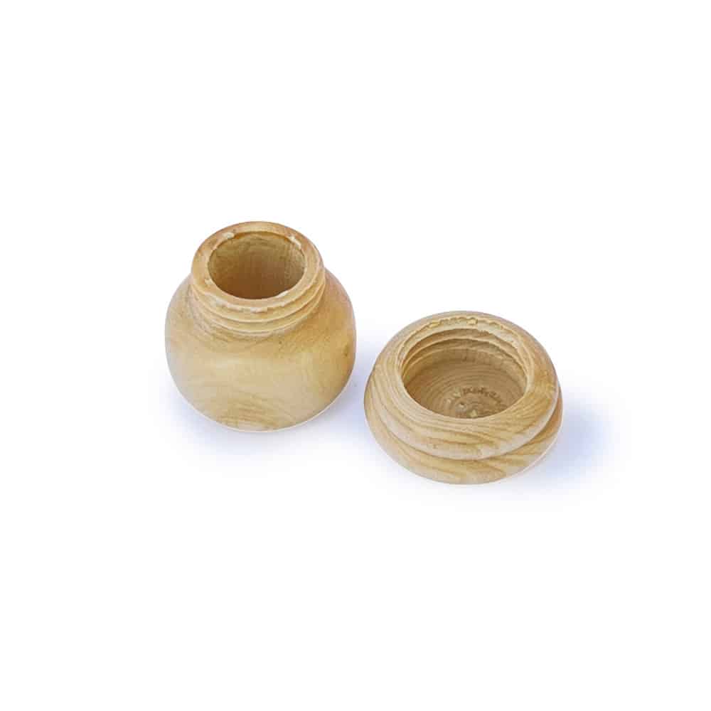 Elle est en buis massif avec un couvercle gravé.